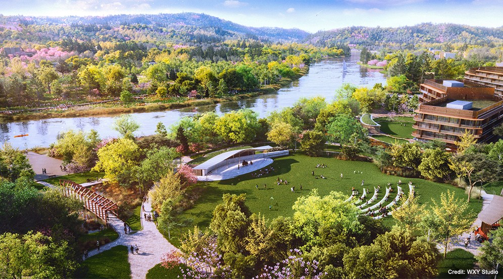 Langan provided landscape architecture, site/civil, and traffic services for the revitalization of a 32-acre riverfront park. Historically separated from the town’s Village Center by a steep bluff, active rail lines, and municipal infrastructure, Young’s Field Park lacked safe and intuitive connections to the Housatonic River and surrounding open spaces. The revitalization master plan establishes organized parking, enhanced pedestrian and bicycle connectivity, recreational amenities, and flood-resilient design strategies to align with zoning, wetlands, and transportation requirements while reconnecting the downtown area to the riverfront.